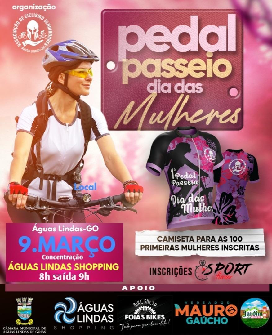 Inscrições Sport, Camiseta para as 100 primeiras Mulheres inscritas, 09 de Março, Concetração Águas Lindas Shopping, 08h Saida 09h.